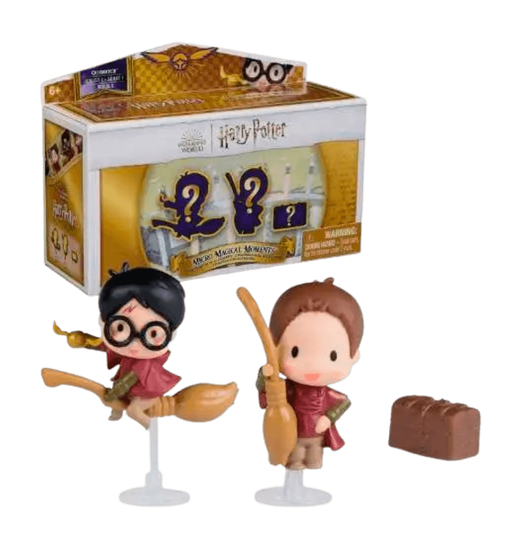Descubre una nueva forma de coleccionar a tus personajes favoritos de Harry Potter con los Micro Magical Moments Quidditch 2-Packs. Cada caja sorpresa incluye dos figuras en miniatura de 3,8 cm con temática de Quidditch, un accesorio relacionado y dos soportes de exhibición. Con cuatro sets diferentes para coleccionar, cada uno representa escenas y personajes emblemáticos del mundo del Quidditch.