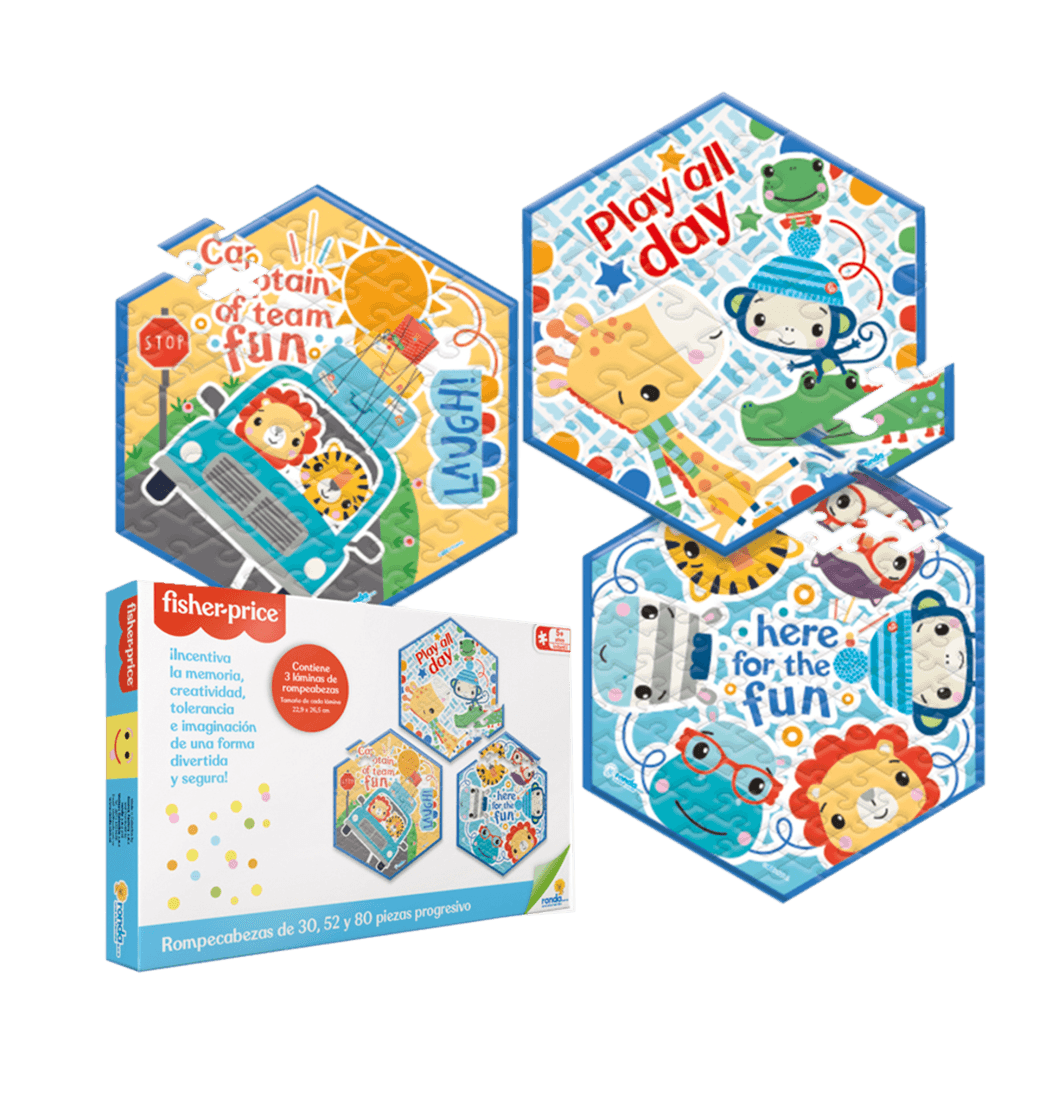 3 Rompecabezas Progresivo Fisher Price 30, 52 y 80 Piezas - Ronda
