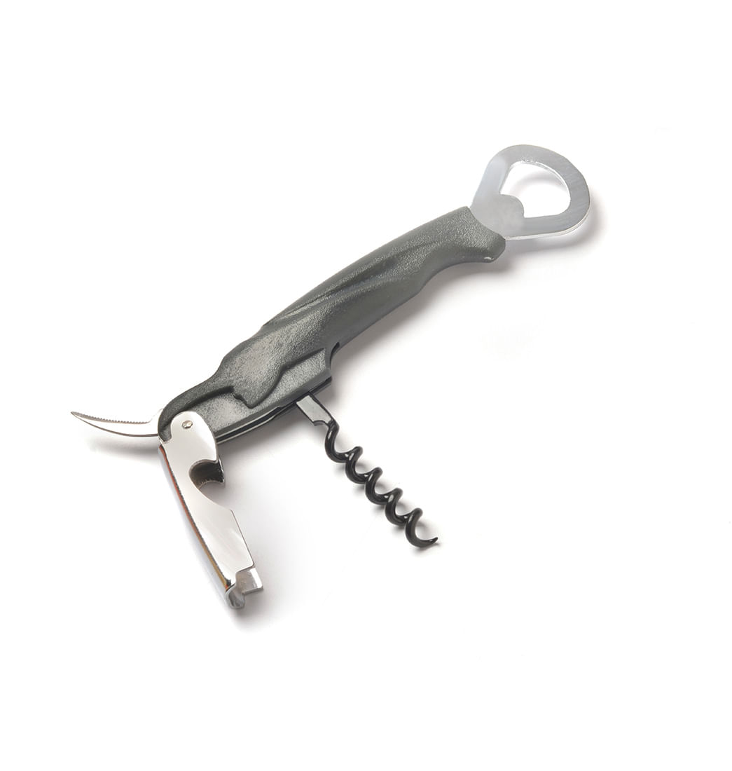 Este espectacular utensilio será un complemento necesario e indispensable para tu cocina, ya que con el podrás descorchar botellas de vino y destapar botellas con tapas de metal. Cuenta con mango en plástico antiadherente gris de moderno y atractivo diseño, además está fabricado en metal cromado de gran resistencia ¡Anímate y adquiérelo ahora!