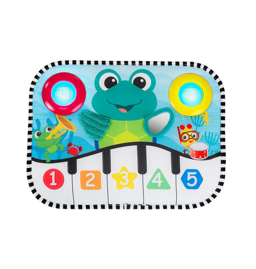 El bebé se divertirá mucho descubriendo la música con el juguete musical para cuna y almohadilla para patadas Neptune's Kick & Explore de Baby Einstein Ocean Explorers, un suave juguete musical que ayuda al bebé a explorar melodías, crear canciones originales y aprender letras, números y nombres de formas.