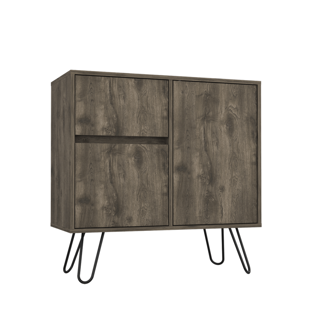 Este Aparador será ideal y perfecto para la decoración de tu hogar. Cuenta con espacio para colocar y almacenar objetos, además tiene dos puertas, un cajón apertura sin manija, y patas metálicas negras. Esta elaborado en material de alta calidad para una mayor resistencia. ¡Anímate y adquiérelo ahora!.