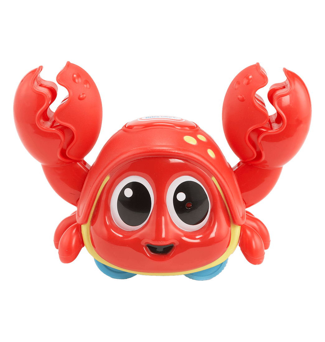 ¡Listos, listos, gateen! Tu bebé se divertirá mucho persiguiendo a este ruidoso crustáceo. A medida que el bebé se acerca, el amigo Cangrejo se mueve de un lado a otro, aplaudiendo con sus garras. ¡La música suena para mayor diversión! Este juguete es ideal para estimular en tu bebé habilidades motoras, coordinación mano-ojo y la solución de problemas. El desarrollo de tu bebé es muy importante y con este tipo de juguetes puedes ayudarle, además de brindarle diversión en todo momento. ¡No esperes más y llévalo ahora!