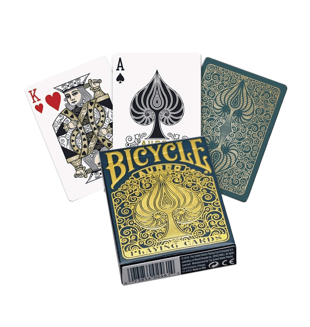 La Baraja Aureo cuenta con diseños únicos inspirados en el arte del Renacimiento. Lámina y relieve para un aspecto prémium y un acabado clásico con cojín de aire para facilitar el barajado y un rendimiento óptimo. ¡Anímate y lleva ahora está Baraja de Cartas!