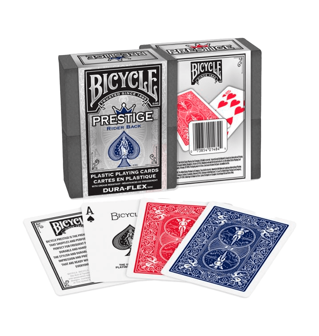 Muchos profesionales prefieren la flexibilidad y durabilidad de las tarjetas de plástico. Las tarjetas Bicycle Prestige ofrecen una durabilidad inigualable. Es la única tarjeta 100% plástica que ofrece una sensación similar al papel. ¡No esperes más y anímate a llevar esta fabulosa Baraja de cartas!