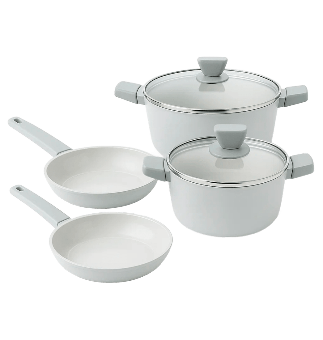 Incluye: Sartén 20 cm Ideal para porciones individuales, huevos, vegetales y preparaciones rápidas, sartén 24 cm tamaño versátil para saltear, sellar carnes y cocinar para 2–3 personas. Olla 20 cm con tapa perfecta para sopas, arroz, salsas y guisos medianos. Olla 24 cm con tapa ideal para pastas, estofados y preparaciones familiares.