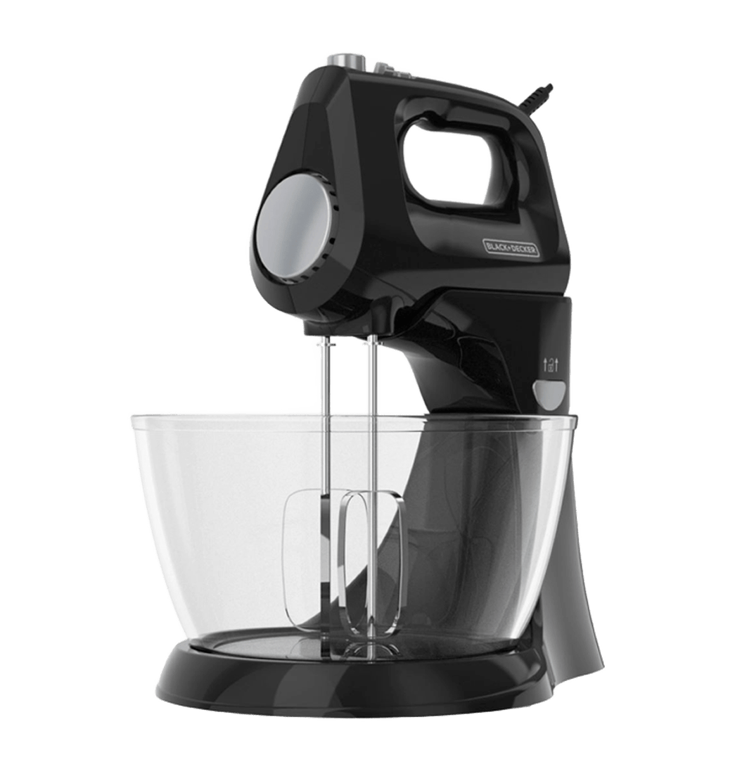Incluye: 2 batidores de alambre, 2 ganchos para masa, 2 recipientes giratorios de acero inoxidable de 4.48L y vidrio de 3.9L.