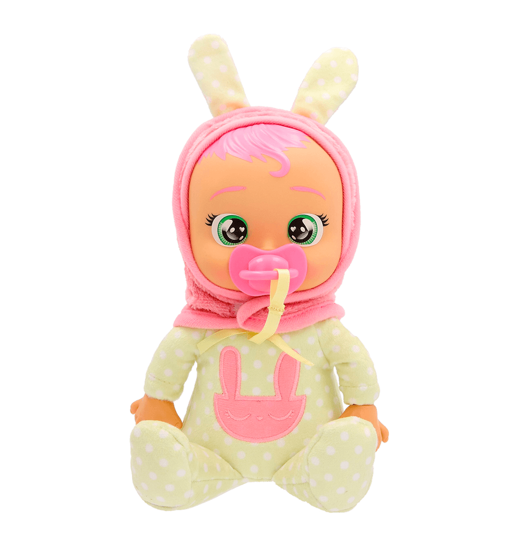 ¡Este bebé Cry Babies esponjoso con lágrimas reales y un lindo diseño será el compañero de juegos más dulce de los más pequeños! El bebé de juguete, que comienza a llorar cuando se le quita el chupete, se calma con su chupete y enseña a los niños a formar vínculos emocionales.
