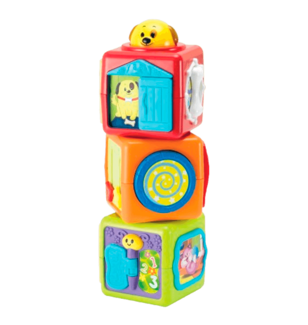 No hay nada más que les guste a los bebés que jugar con bloques de cubos apilables. Gracias a sus impactantes colores y contrastes, es el juguete preferido por los más pequeños, ya que está lleno de animalitos divertidos que se asoman y meten cuando él bebé los golpea.