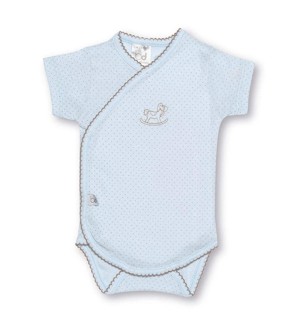 El diseño de pequeños lunares y el bordado de caballito balancín aportan un toque dulce y elegante. Ideal para cualquier estación, este body es fácil de poner y quitar, lo que lo convierte en una prenda funcional para el día a día. Los acabados en ondas contrastadas realzan la calidad del diseño, garantizando durabilidad y estilo.