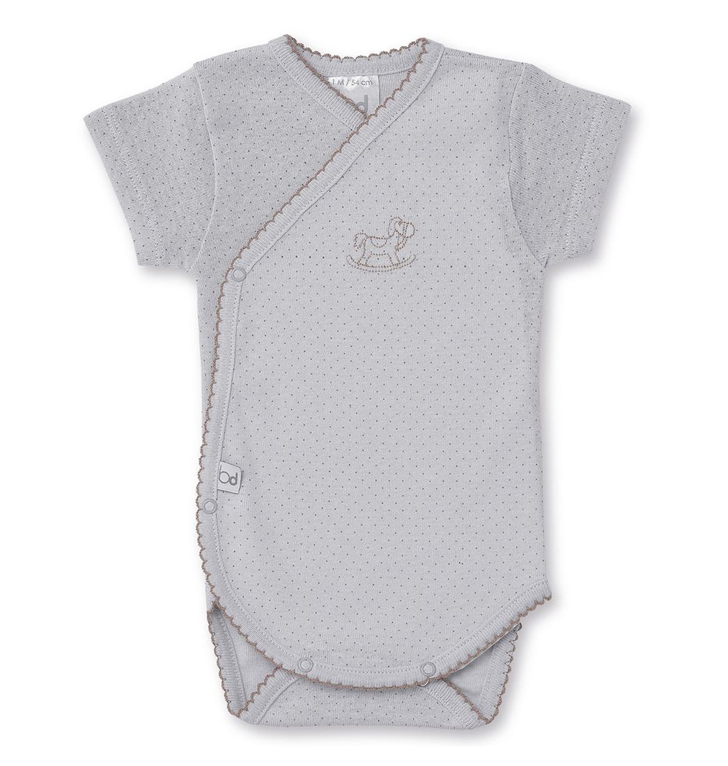 El diseño de pequeños lunares y el bordado de caballito balancín aportan un toque dulce y elegante. Ideal para cualquier estación, este body es fácil de poner y quitar, lo que lo convierte en una prenda funcional para el día a día. Los acabados en ondas contrastadas realzan la calidad del diseño, garantizando durabilidad y estilo.
