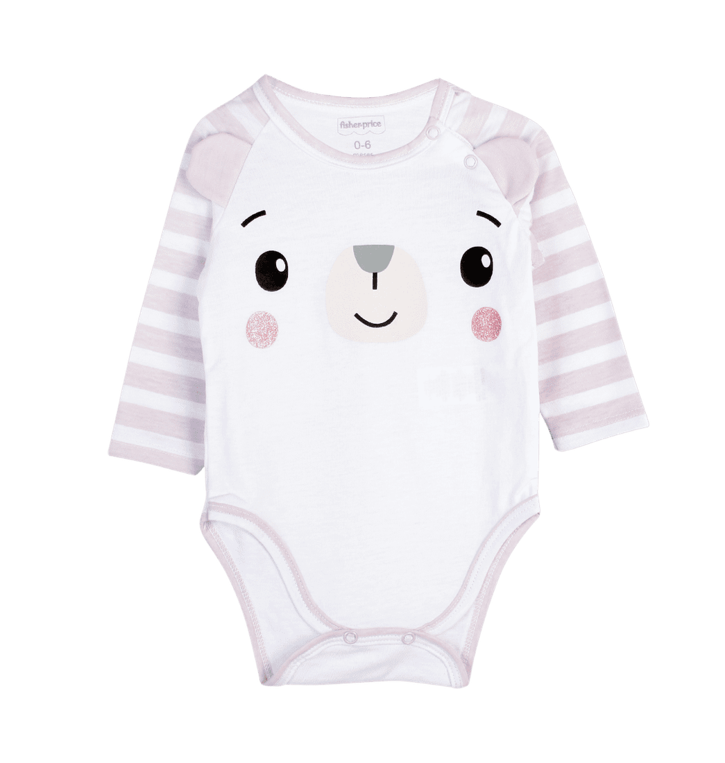 Con este hermoso Body para bebés tu hija podrá lucir realmente encantadora en toda ocasión. Cuenta con un tierno estampado frontal estilo roleplay con orejas 3D, mangas ranglán en contraste con broches y abertura en la entre pierna para una fácil postura. Está fabricado en material ligero y delicado para que tu pequeña este cómoda durante todo el día. ¡No esperes más y anímate a llevarlo ahora!.
