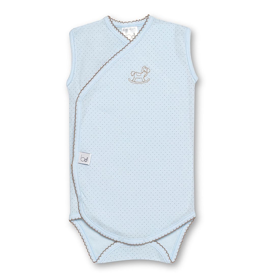 El diseño de pequeños lunares y el bordado de caballito balancín aportan un toque dulce y elegante. Ideal para cualquier estación, este body es fácil de poner y quitar, lo que lo convierte en una prenda funcional para el día a día. Los acabados en ondas contrastadas realzan la calidad del diseño, garantizando durabilidad y estilo.