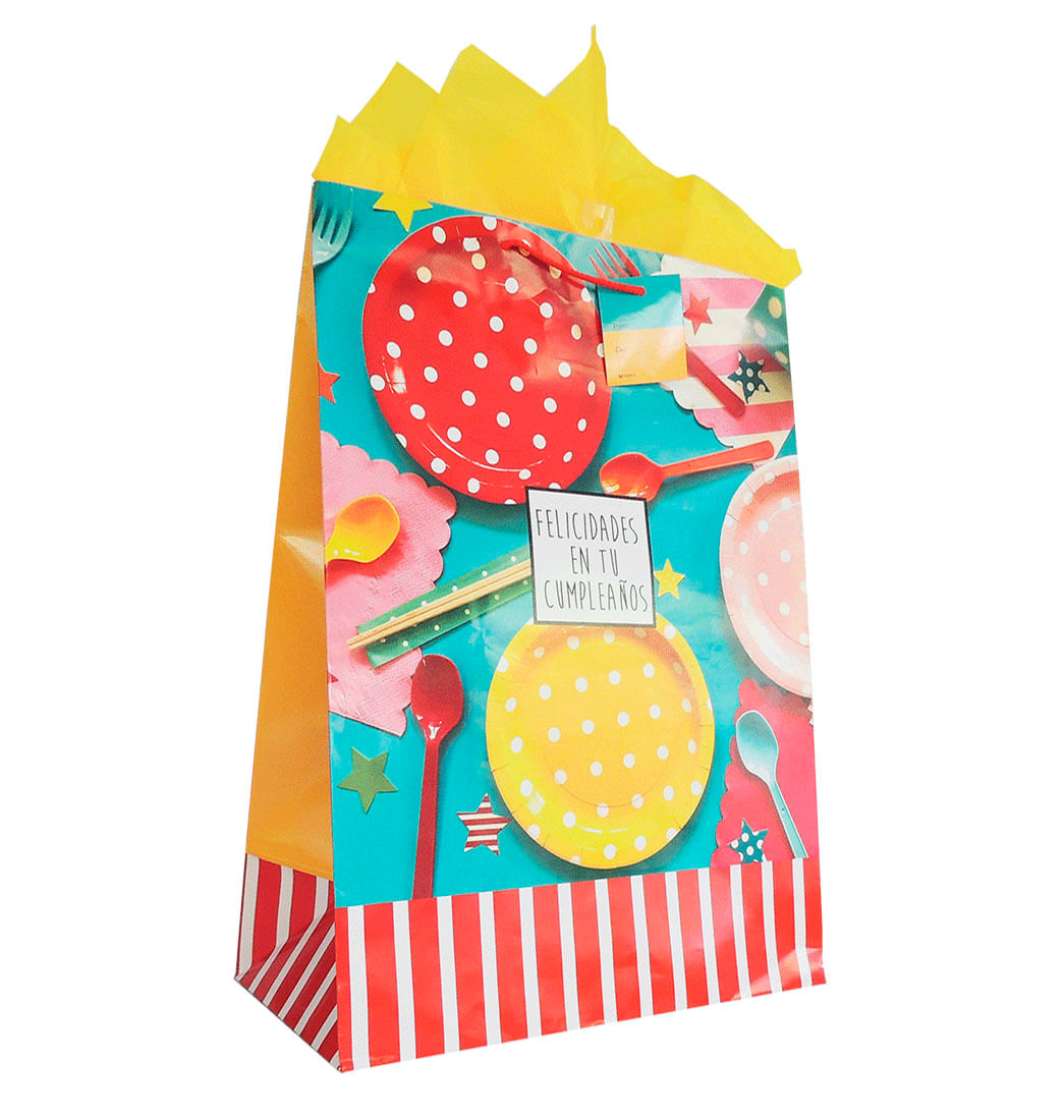 En esta espectacular bolsa con tierno diseño y linda combinación de colores, podrás empacar el regalo para entregarle a una persona especial dándole un estilo único, además incluye tarjeta para que la marques y no le falte nada a tus obsequios ¡Anímate a llevarla!