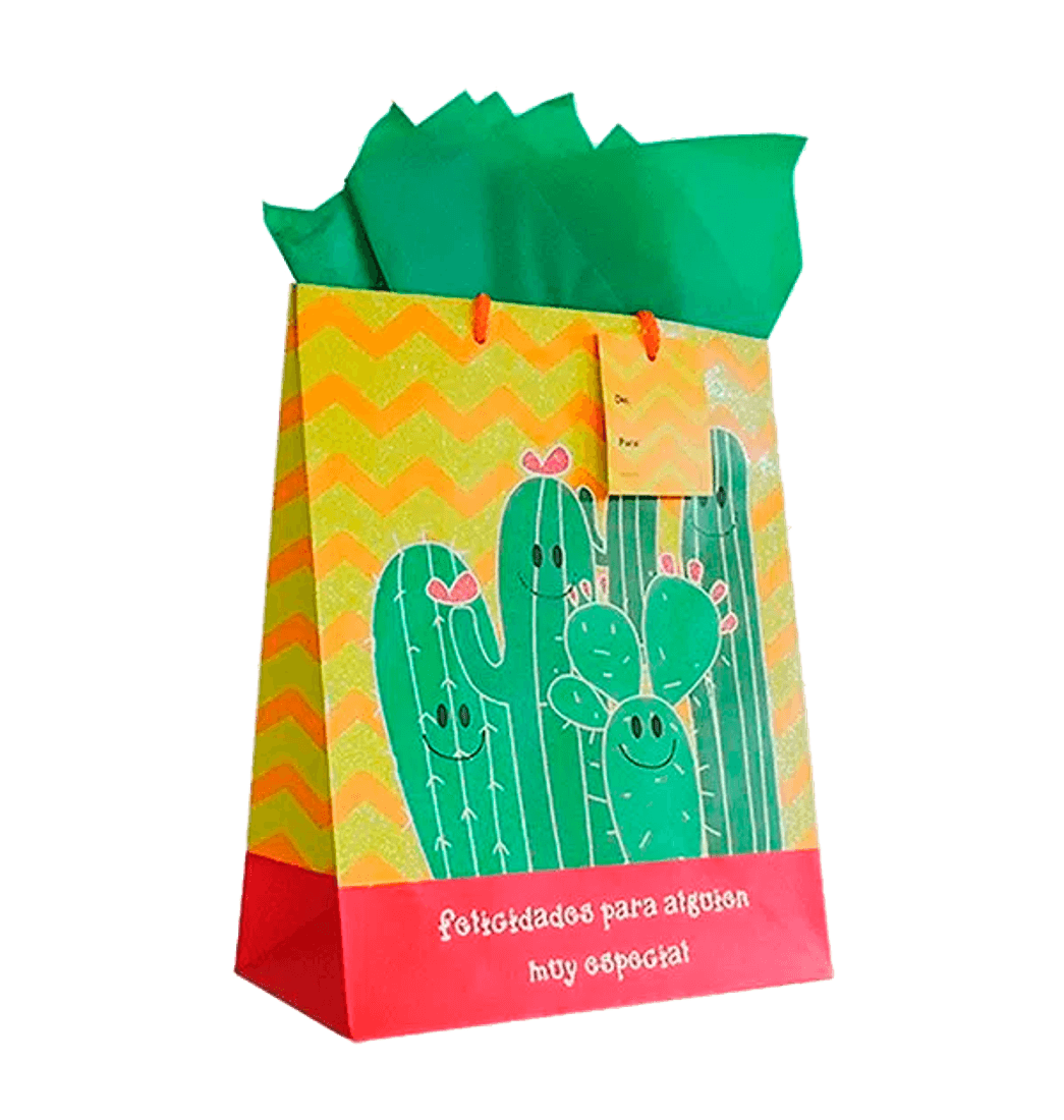 Esta bolsa con espectacular diseño brillante y linda combinación de colores es ideal para que empaques los regalos de cumpleaños dándole un estilo único y divertido, además incluye tarjeta para que la marques y no le falte nada a tus obsequios ¡Anímate a llevarla!