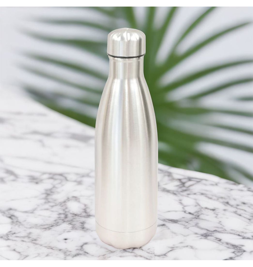 Elegante y moderna, esta botella de 500 ml en acero te ofrece máxima durabilidad y una excelente conservación de la temperatura. Ideal para un estilo de vida activo y sofisticado, es resistente a golpes y fácil de limpiar.