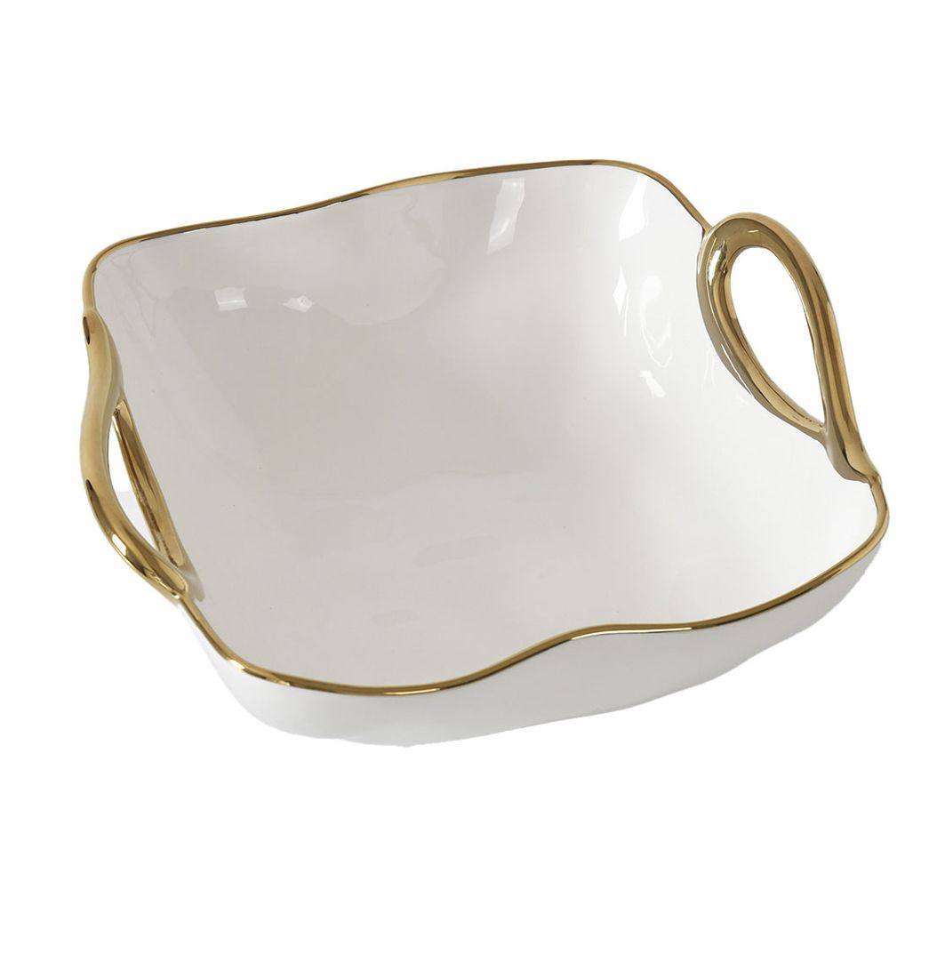 Los artículos de esta línea tienen una base de porcelana de alta cocción, lo que proporciona una superficie resistente al calor, a las manchas y al deslustre. Diseñados para presentación de alimentos y servicio en mesa, con un acabado suave y colores clásicos como blanco con acentos metálicos: plateados o dorados.