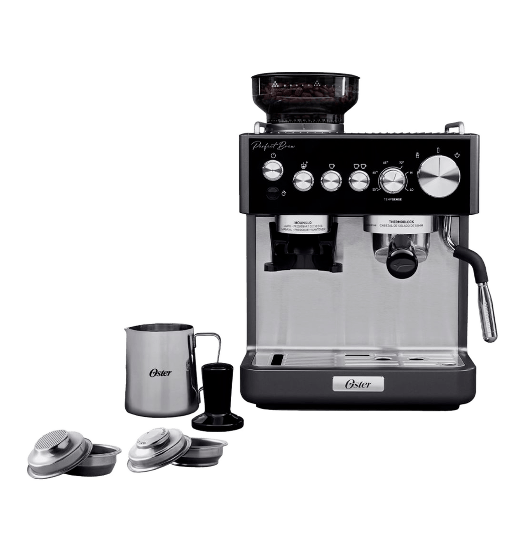 Cafetera de Espresso Oster Perfect Brew con Molinillo de Muelas, Tubo de Vapor Tempsense y Porta filtro de 58 mm - Cafetera Perfect Brew de Espresso - Oster