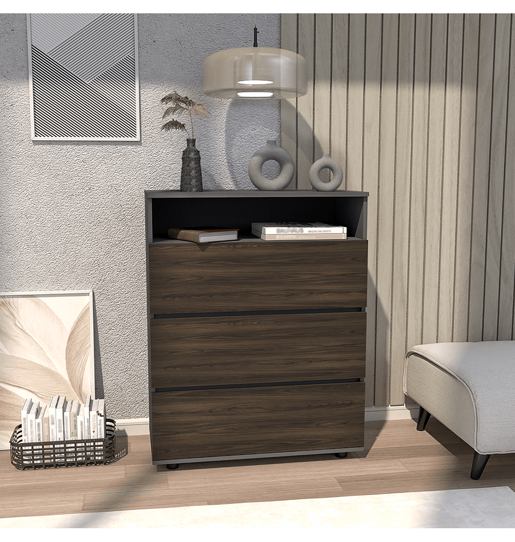 Organiza tu ropa y accesorios con este mueble cajonera, práctica y moderna. Sus amplios cajones ofrecen el espacio perfecto para mantener todo en su lugar, mientras su diseño elegante se adapta fácilmente a cualquier estilo de habitación. ¡No lo pienses más y anímate a llevarla ahora!.