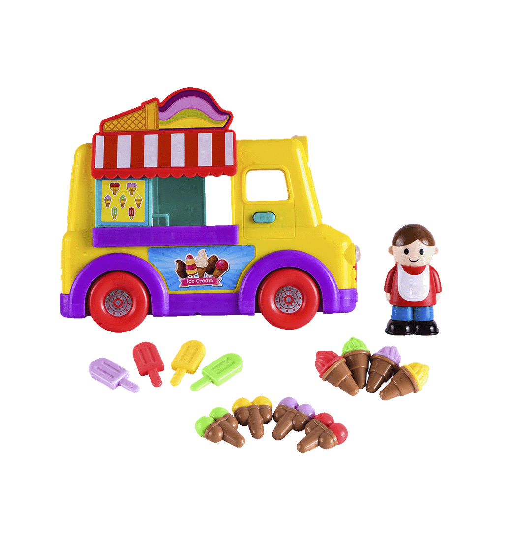 Este camión de helados con ruedas y accesorios, es un pequeño y alegre vehículo repleto de divertidos sonidos y efectos de luces, ideal y perfecto para que tu hijo se divierta y se entretenga por más tiempo recreando historias y simulando siendo un heladero. Este juguete es perfecto para juegos de rol imaginativos ¡Sorprende a tu hijo y anímate a llevarlo ahora!.