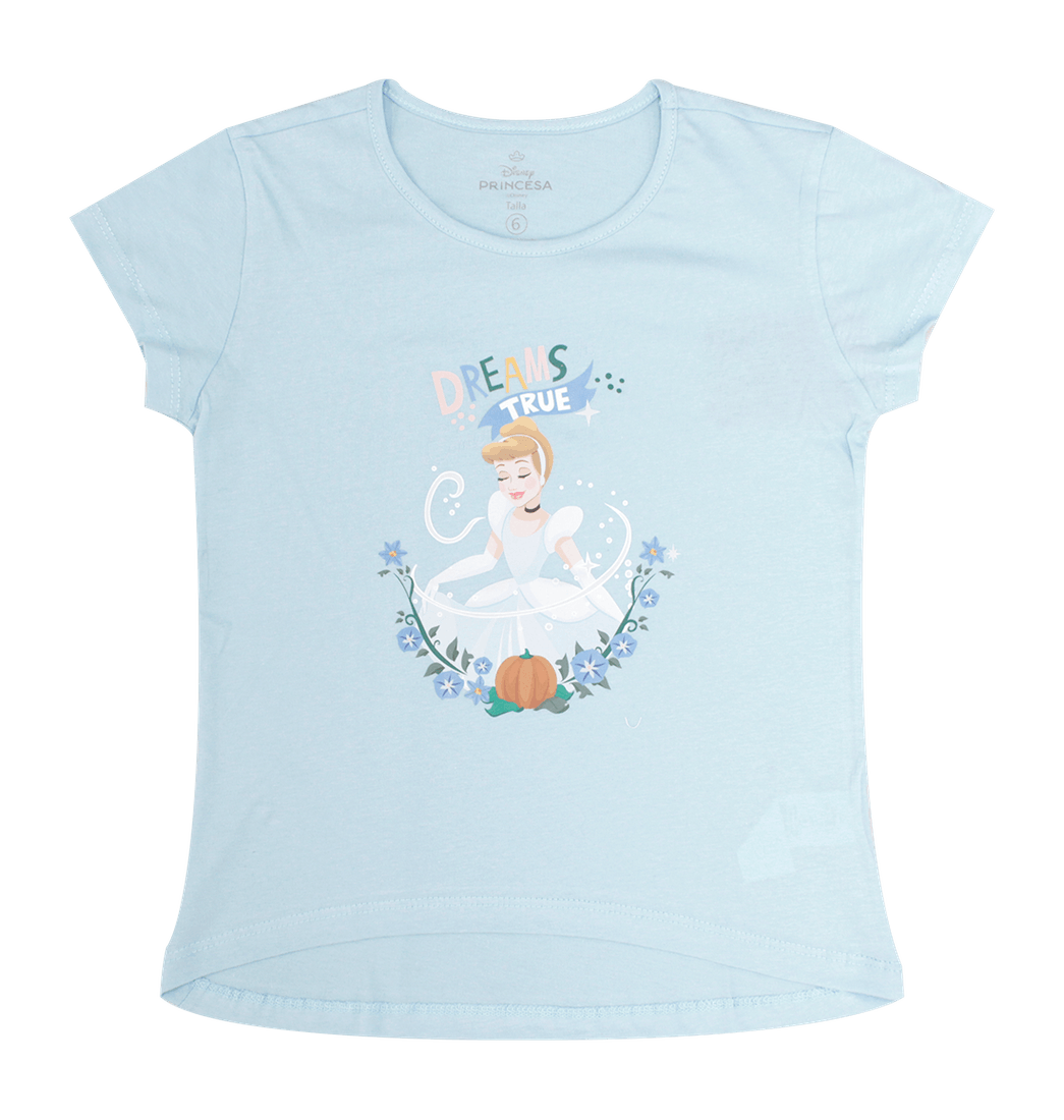 Camiseta Manga Corta Azul Claro Niñas - Princesas