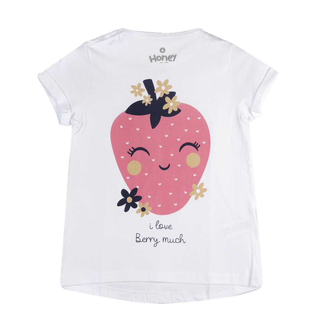 Camiseta Manga Corta Fresa Blanco Niñas - Honey Bees Honey Bees - Pepe Ganga - Baby Ganga