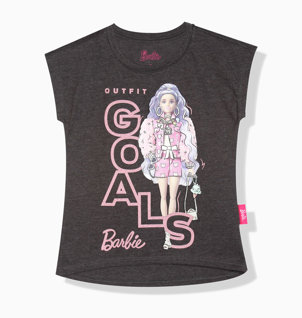 Camiseta Manga Corta Gris para Niñas - Barbie