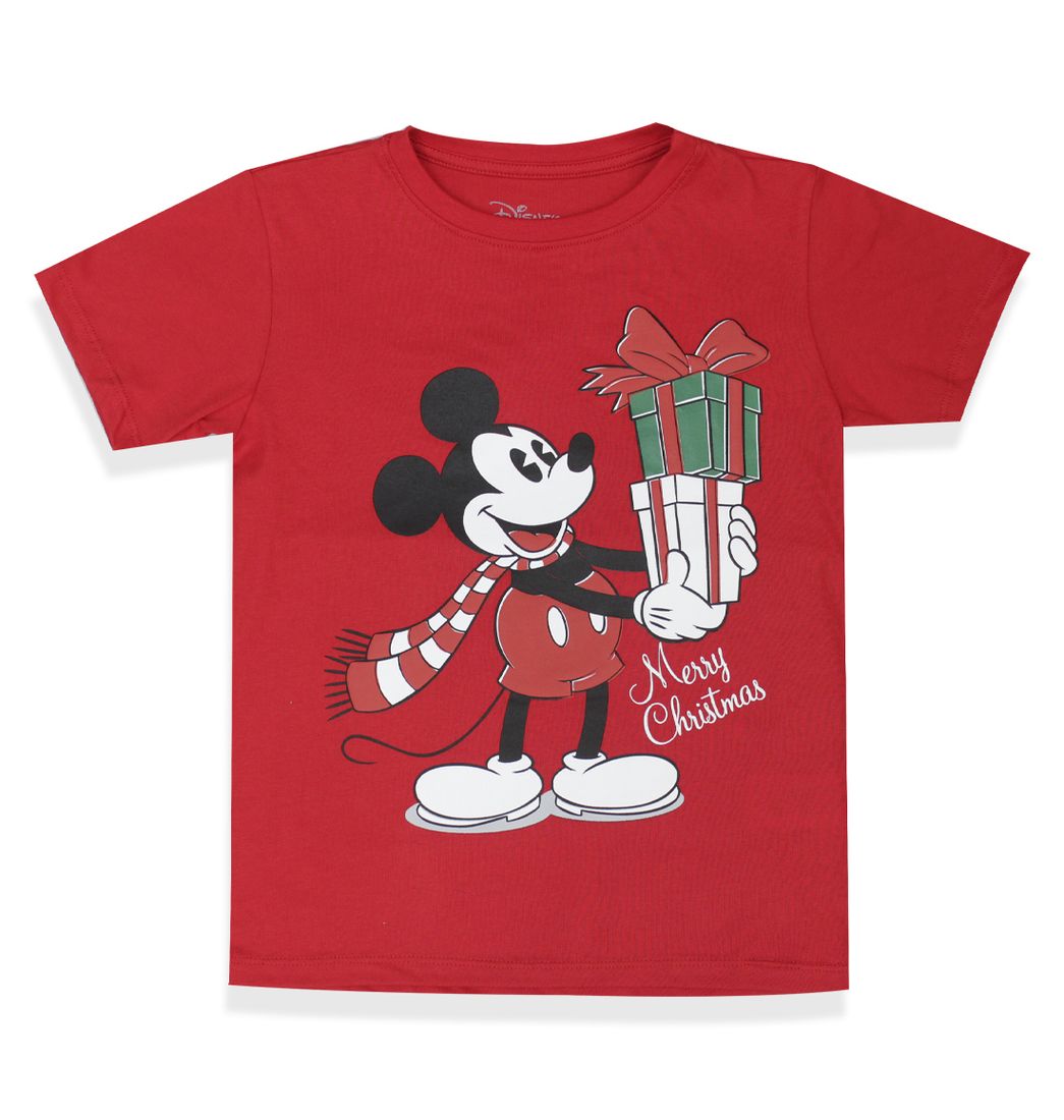 Camiseta Manga Corta Merry Christmas Rojo Niños - Mickey