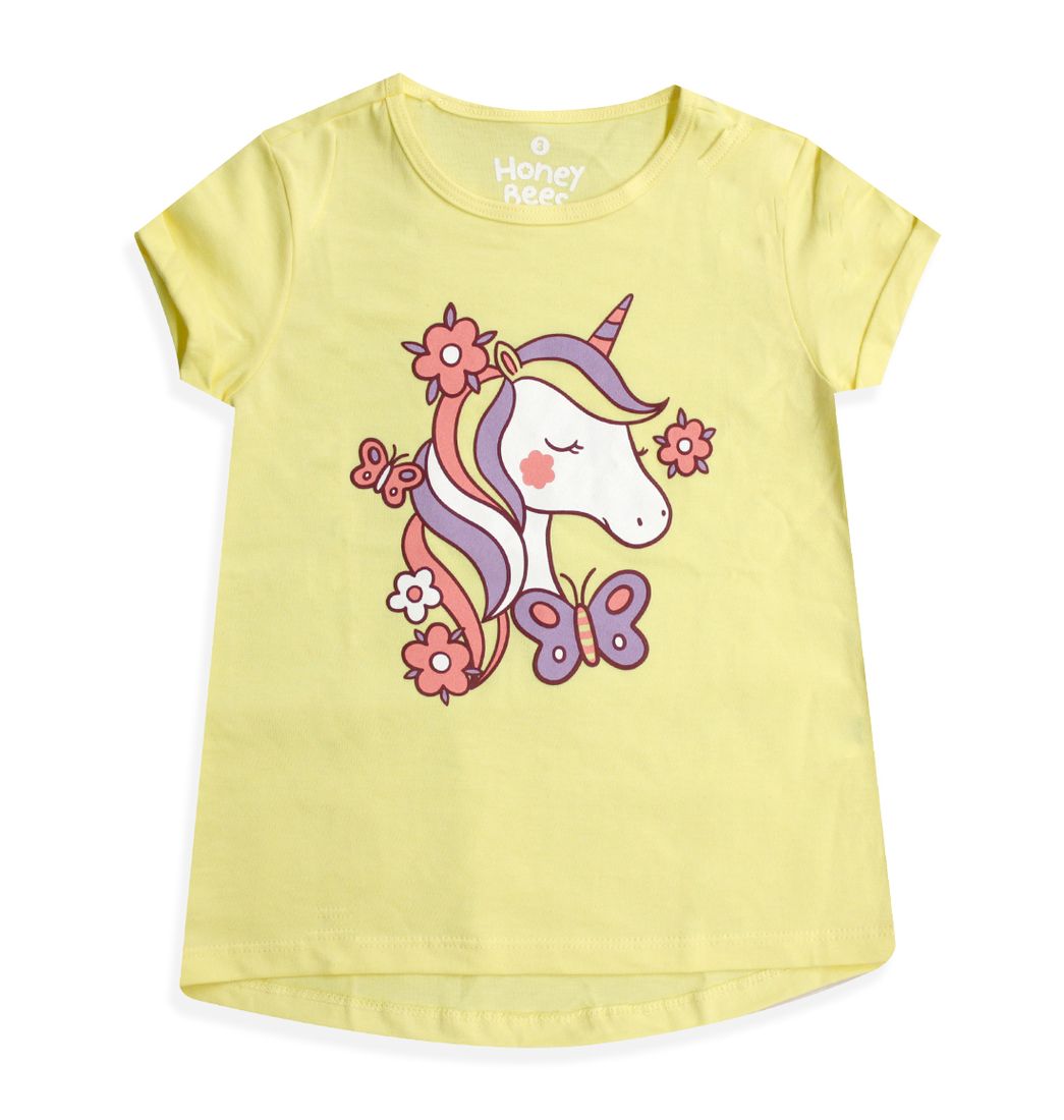 Camiseta Manga Corta Unicornio Amarillo Niñas - Honey Bees