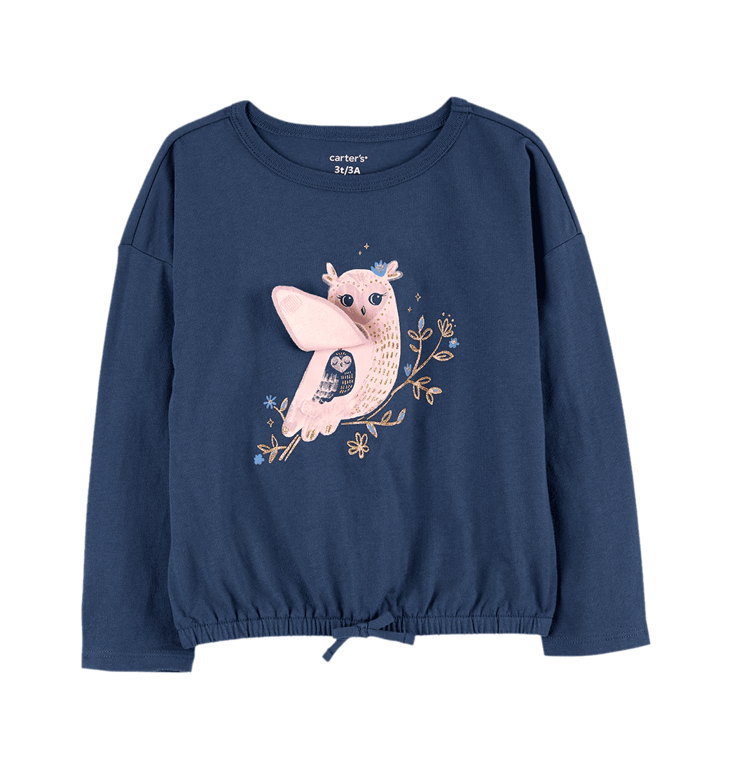 Camiseta Manga Larga Búho Azul Niñas - Carter's