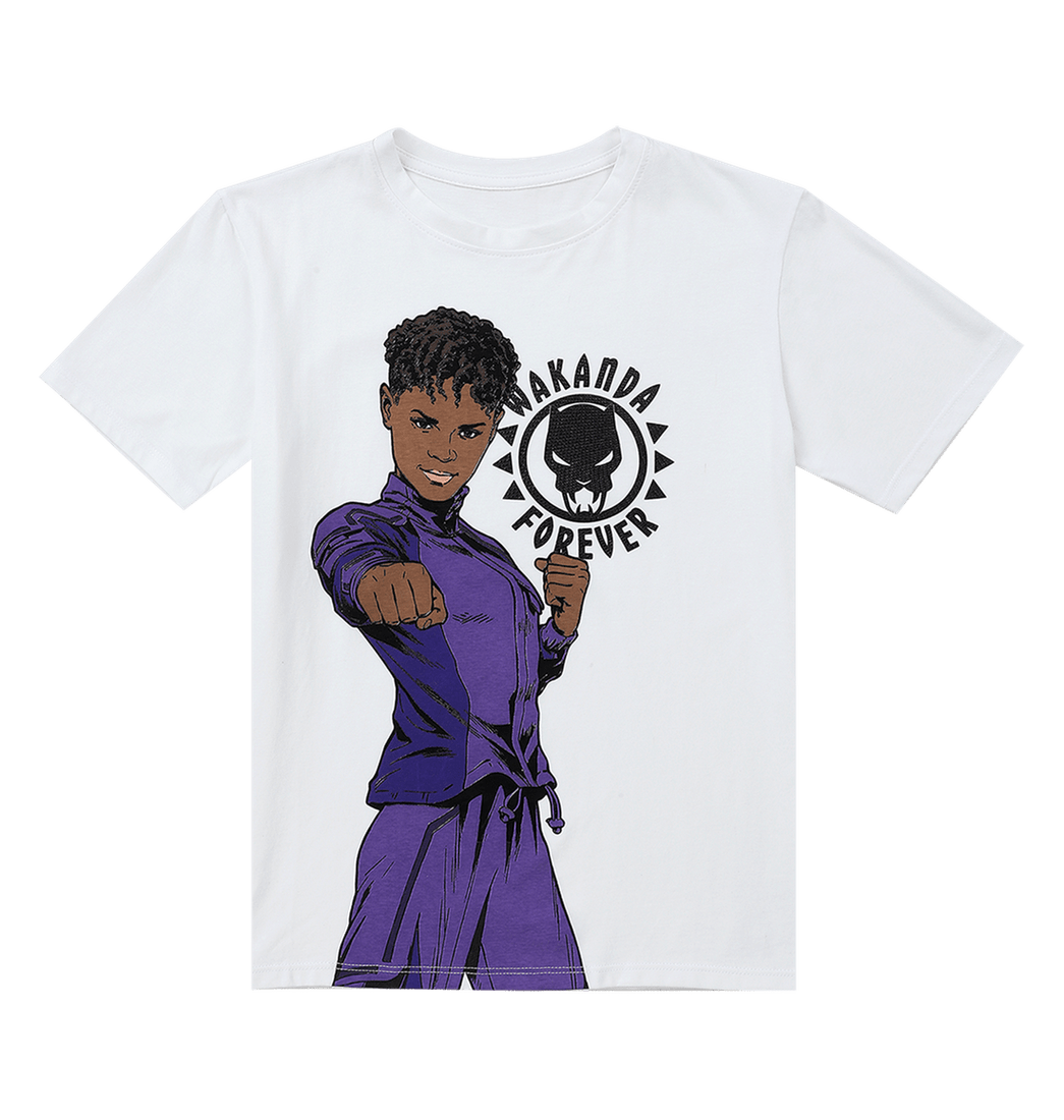 Magnífica camiseta cuello redondo manga corta estampada con un increíble motivo de la tan esperada secuela de la película Black Panther: Wakanda Forever. Su silueta y material 100% algodón brindan comodidad y frescura para que los niños vivan grandes aventuras junto a sus nuevos personajes favoritos.