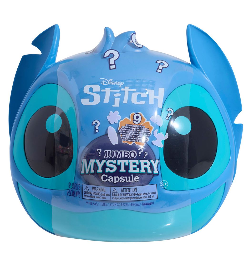 Disney Stitch Jumbo Mystery Capsule, es una cápsula sorpresa con forma de la icónica cabeza de Stitch de aproximadamente 23?cm de alto. Esta cabeza de Stitch está repleta de diversión y es ideal para regalar, coleccionar o simplemente disfrutar de una experiencia de apertura emocionante.