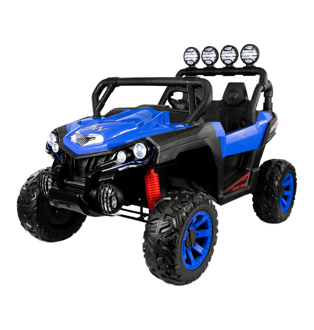 El Carro Eléctrico para niños Xtreme dos puestos, cuenta con un look todoterreno robusto y deportivo. Incluye luces exploradoras que realzan su estilo aventurero y hacen que se destaque donde sea, además, tiene una batería de 12 voltios y dos motores, que ofrece una fuerza necesaria para moverse con estabilidad en terrenos variados, alcanzando una velocidad segura entre 5 a 10 km/h.