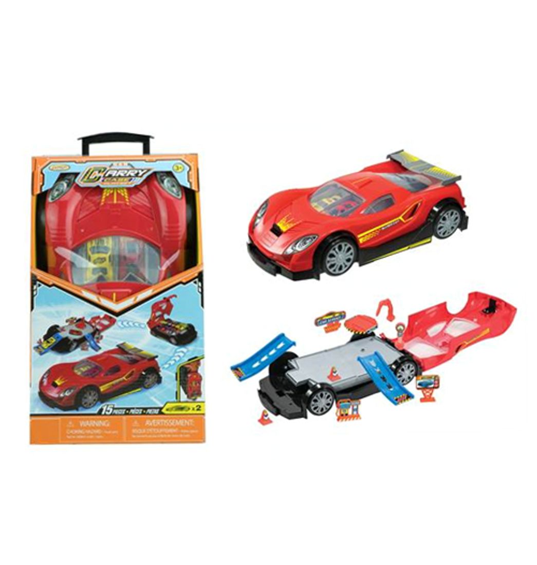 Deja que tu pequeño pase momentos de mucha diversión con este fantástico Carro Maletín Portable que incluye dos vehículo junto con 15 piezas que le brindara aventuras extremas e inigualables. Su diseño cuenta con 12 compartimientos en su interior para llevar y guardar los carros que desee, además tu hijo podrá transfórmalo en plataforma para recrear fabulosas historias de adrenalina y velocidad ¡Anímate y adquiérelo ahora! Recomendado para niños de 3 años en adelante.