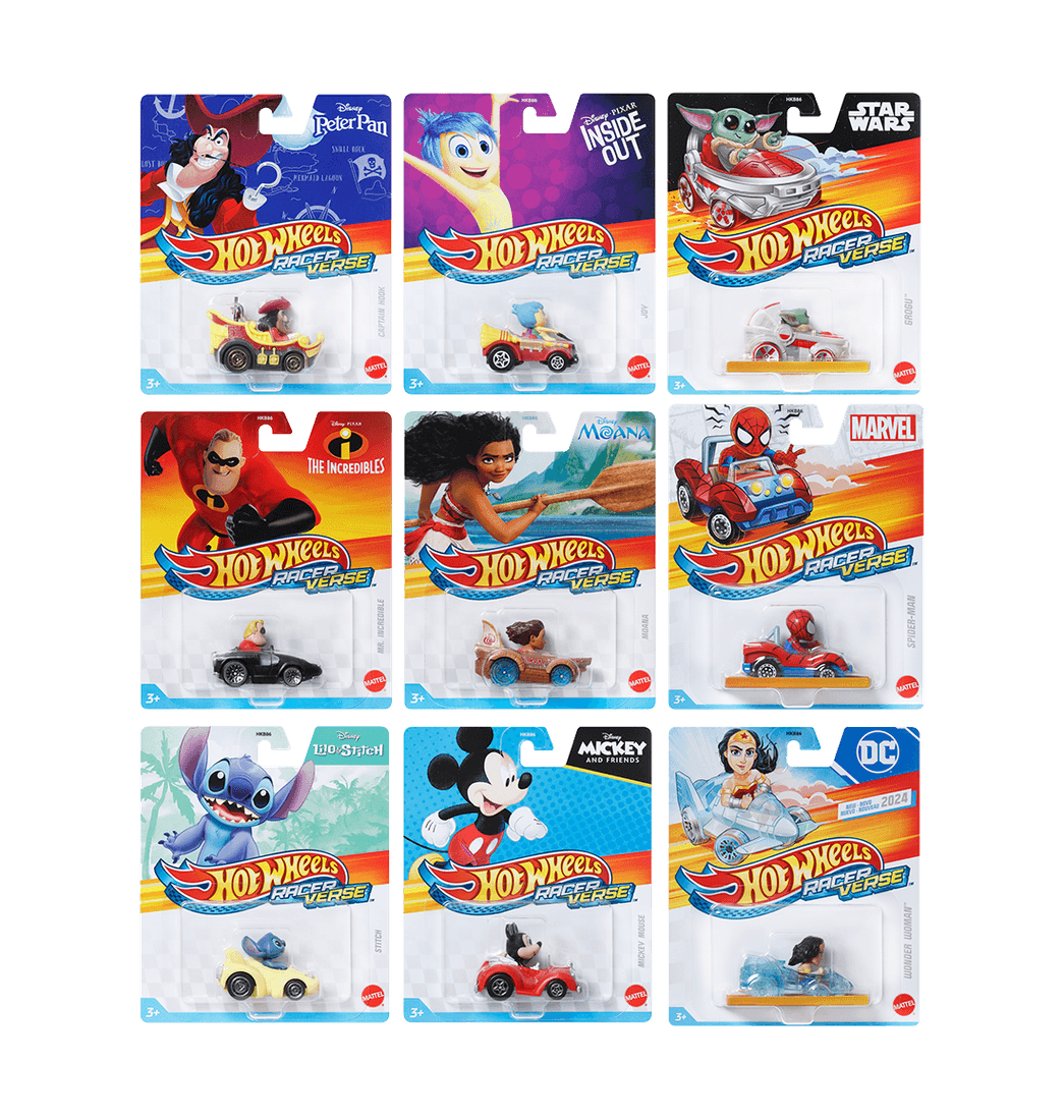 Inicia una colección única junto a Hot Wheels RacerVerse y sus fabulosos carros de Juguete a Escala 1:64. Cada carro representa un icónico personaje de distintas series, películas, videojuegos y más temáticas de la cultura pop.