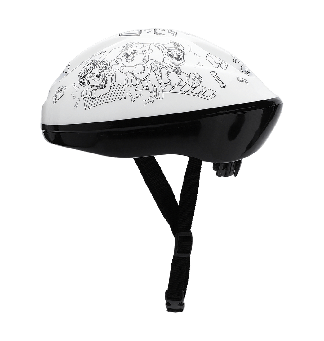 Casco con lindos gráficos de Paw Patrol en blanco y negro para que el niño coloree a sus personajes favoritos, incluye 12 marcadores borrables, tu hijo o hija se divertiran mucho personalizando su propio casco y haciendolo único.