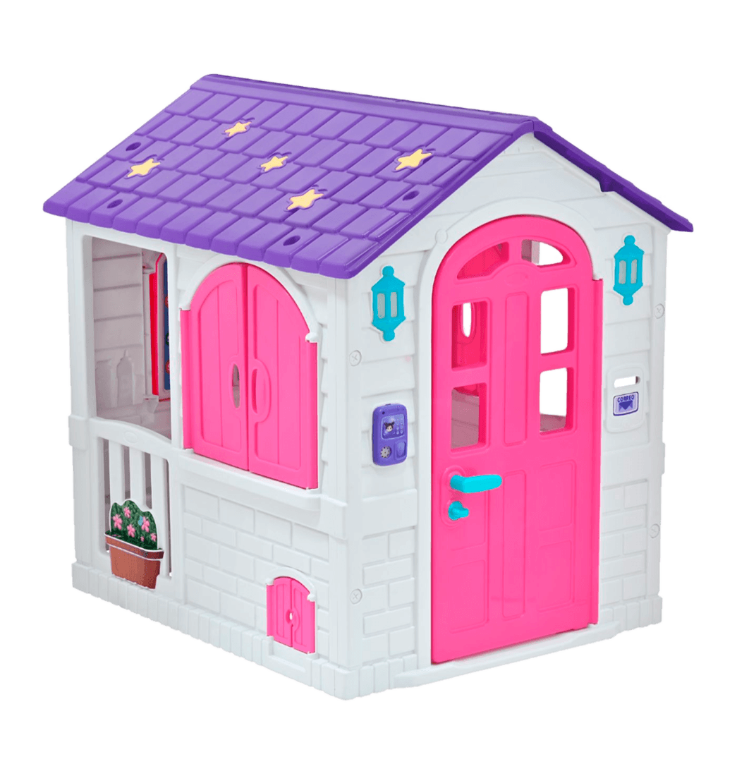 El interior de la casita ofrece un amplio espacio para que varios niños jueguen juntos, con ventanas grandes que permiten una excelente ventilación y entrada de luz natural. Con puerta para mascota. Fabricada en plástico de alta resistencia, montaje rápido y sencillo.