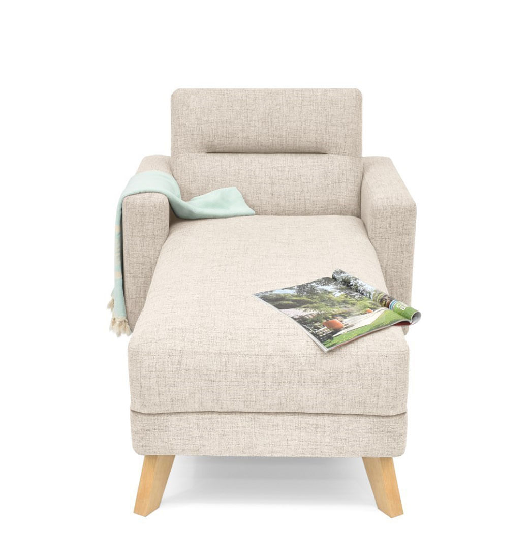 - Tiene espuma de alta densidad tanto en espaldar como en asiento y patas en madera pino.