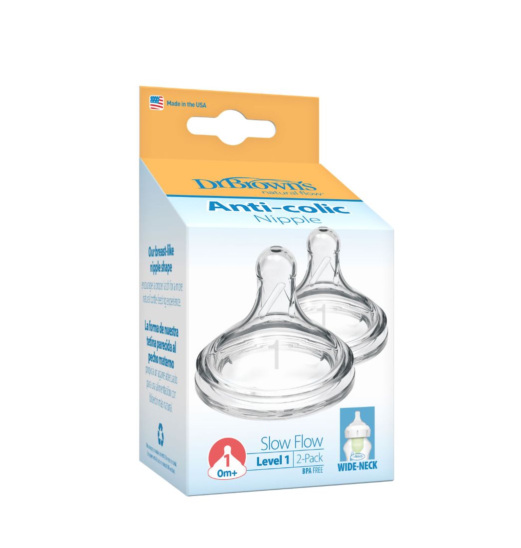 Chupo Boca Ancha Options+ Pq X 2 Nivel-1 - 0-3 Meses - Dr Brown's