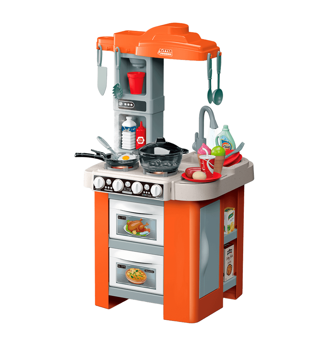 Fabulosa y divertida cocina de juguete perfecta para los pequeños chefs! Con 57 piezas, efectos de sonido, luz y agua, esta linda Cocina infantil es perfecta para niños y niñas con gran imaginación.