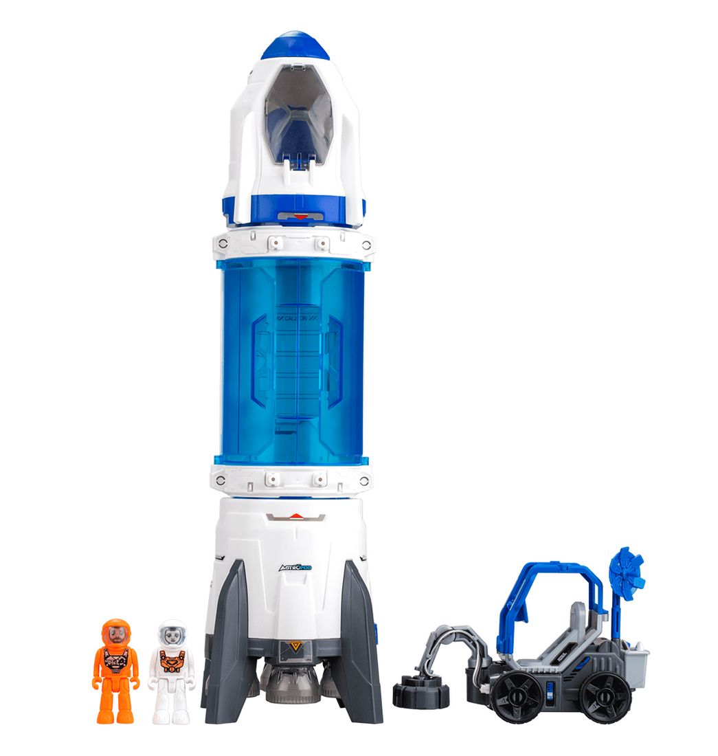El cohete cuenta con lanzamiento de vapor autentico, luces led y efectos de sonidos.