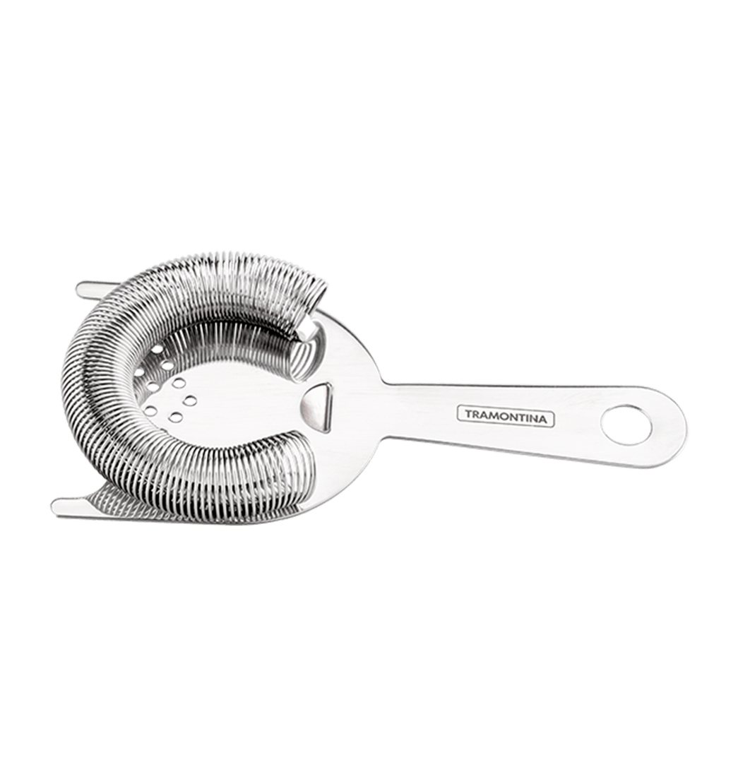 Para obtener un visual mucho más lindo, puede contar con el colador strainer Tramontina para cóctel. Con un diseño diferenciado y terminación con brillo, es indispensable a la hora de finalizar tu bebida, ya que posee un eje, por un cuerpo circular con resortes que sirven para retener los pedazos más grandes de frutas y el exceso de espumas.