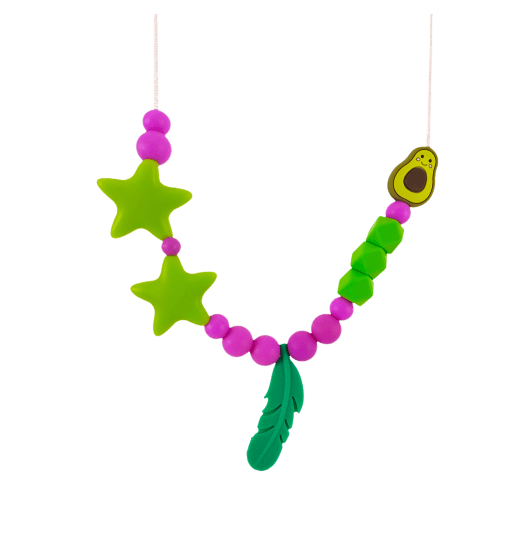 Este collar sensorial es ideal desde las primeras semanas de vida, ya que ofrece texturas suaves y seguras que estimularán a tu bebé, ayudándolo a enfocarse más en alimentarse y menos en jalar tu cabello, tus aretes o distraerse con el entorno.