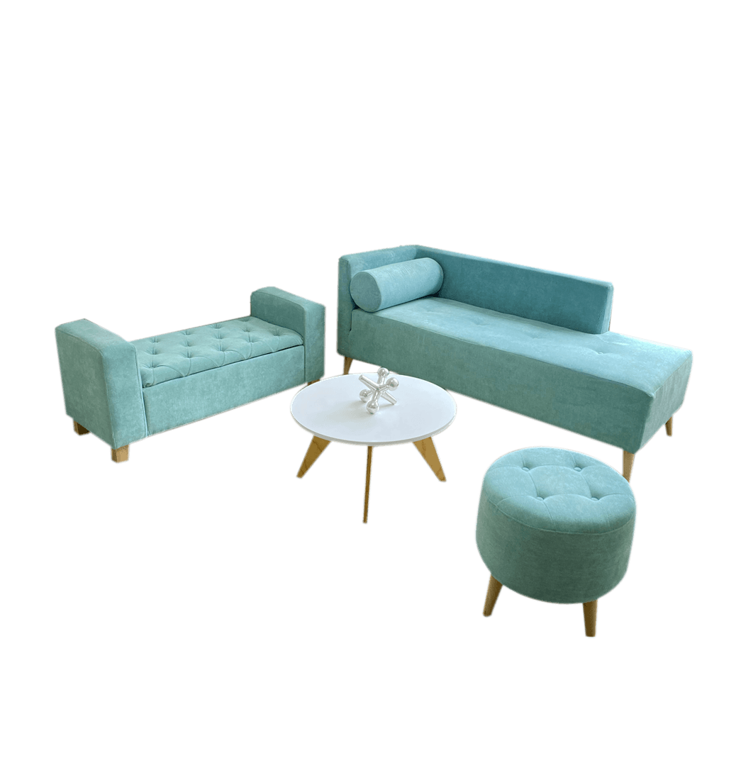 Combo Sofá Chaise Long + Banqueta Baul + Puff y Mesa de Centro - Dko Design