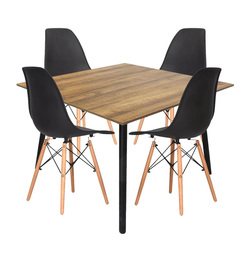 Combo Comedor Cuadrado Look + Set 4 Sillas - Dko Design