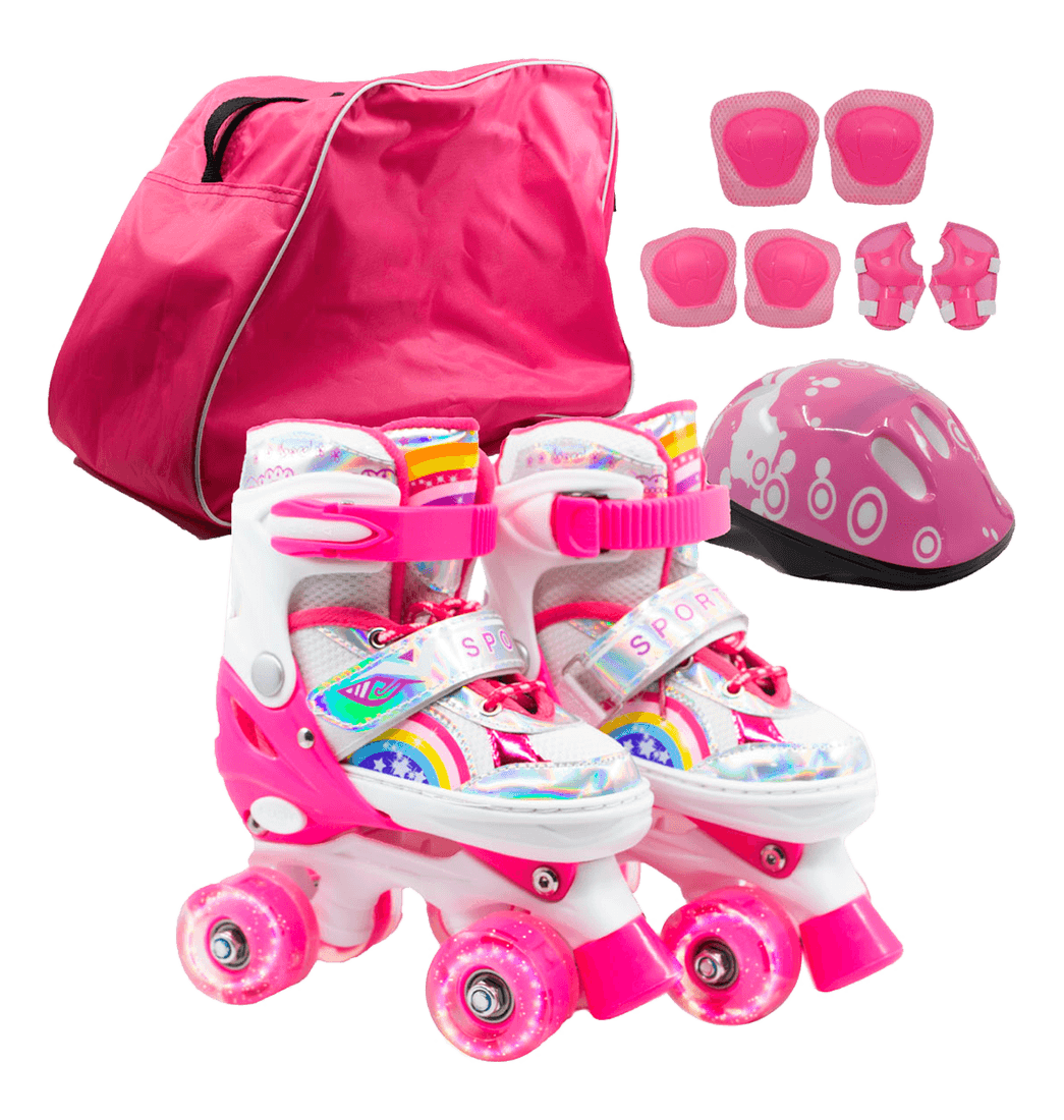 Combo de Patines Rosado + Kit de Protección + Casco Niñas - OnWheels Sports