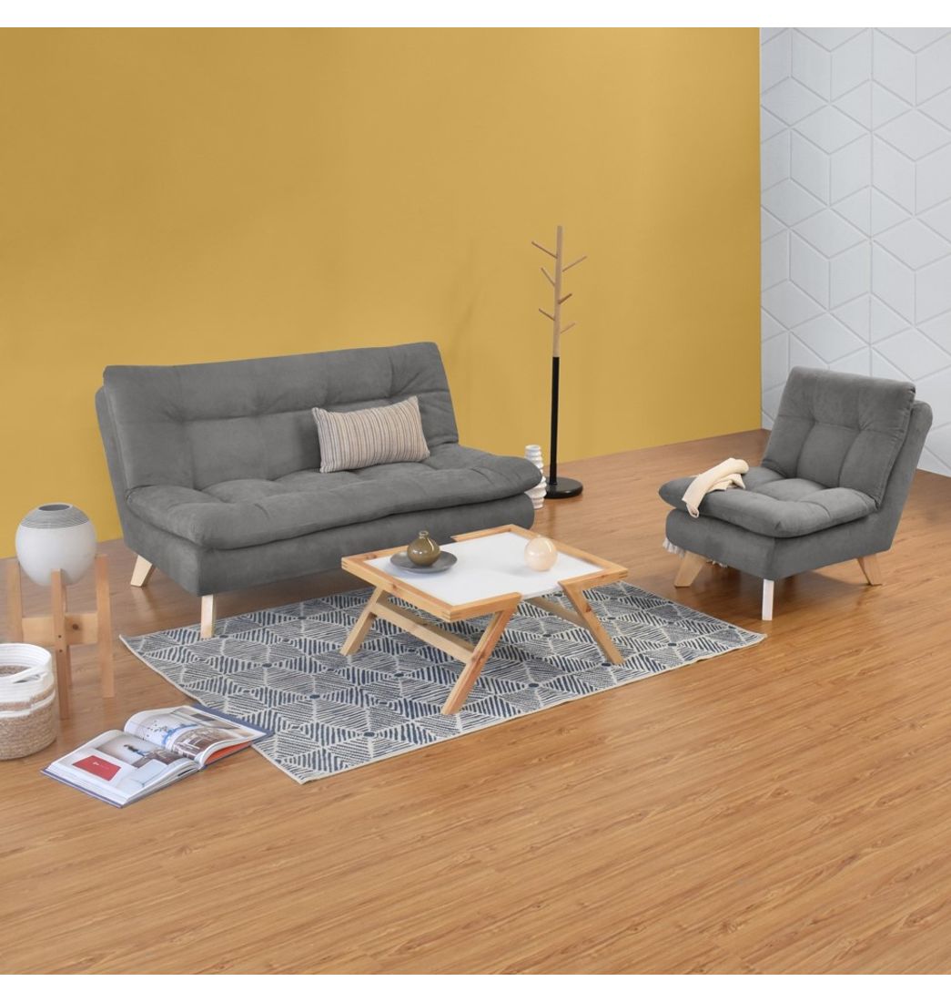 Combo Sala Toulouse Tela Gris + Poltrona + Mesa Centro Dakota - Hogar Venecia
