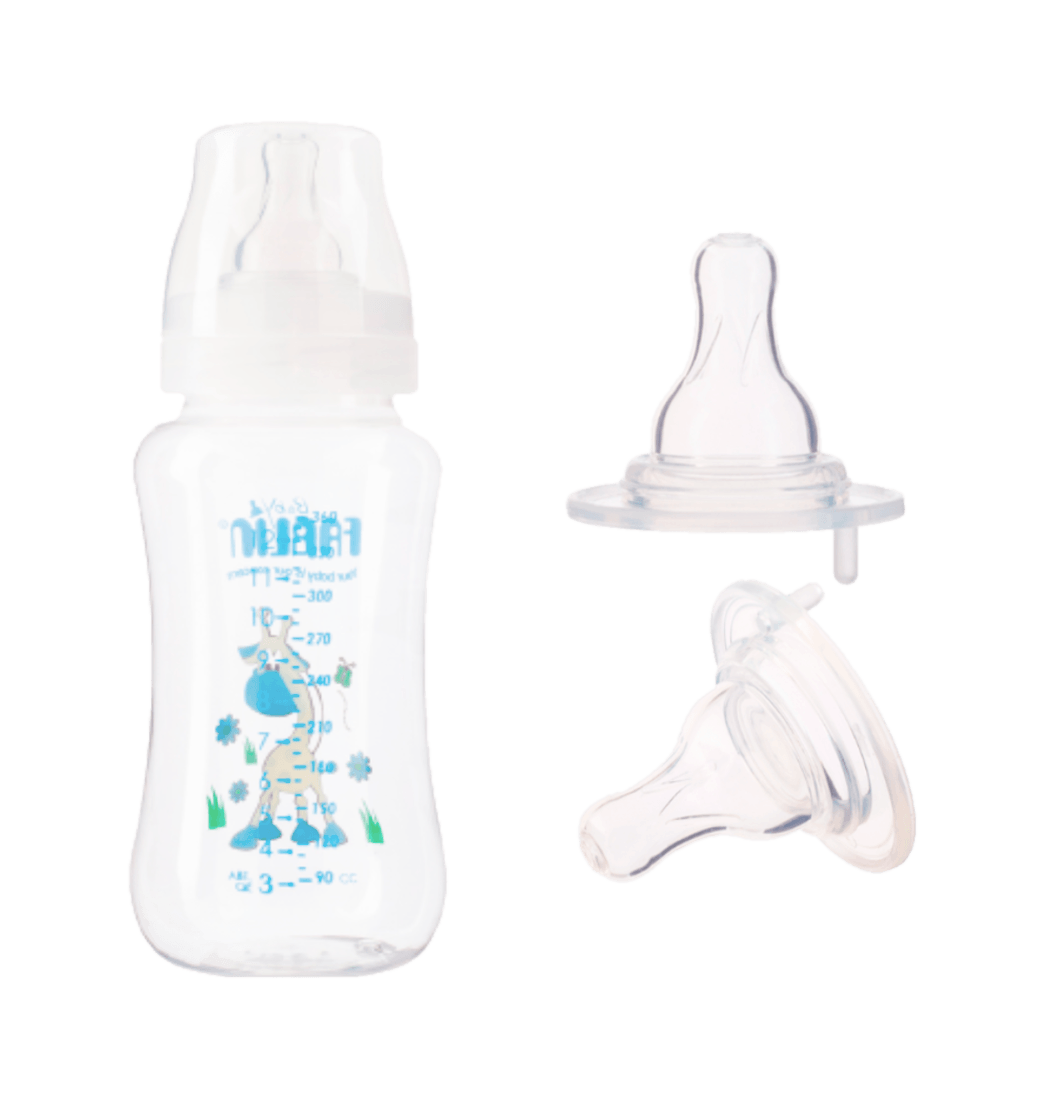 Combo Tetero Boca Ancha + 3 Chupos Anticolico Jirafa Azul