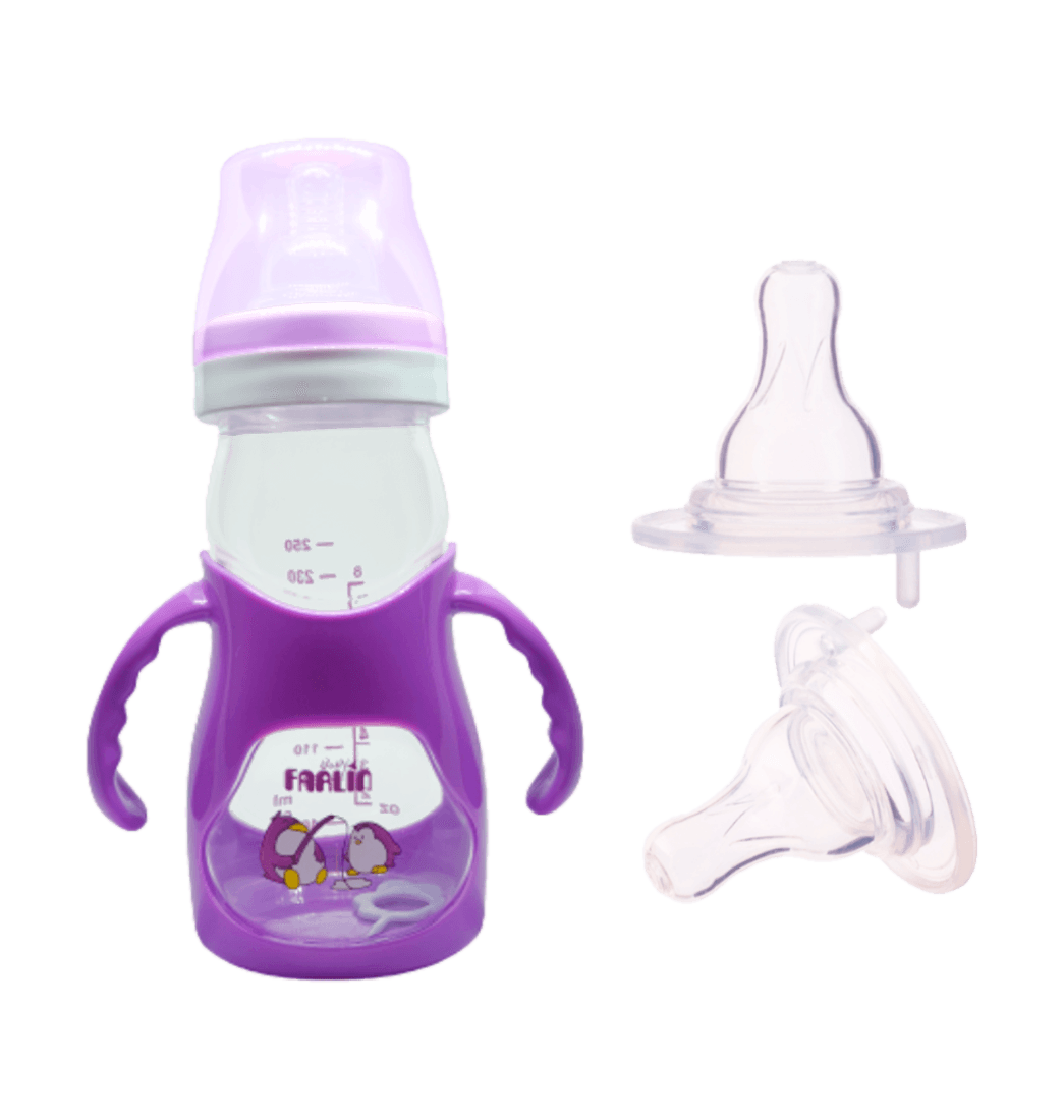 Combo Tetero Curvo con Asas + 3 Chupo Anticolico Pingüino Morado