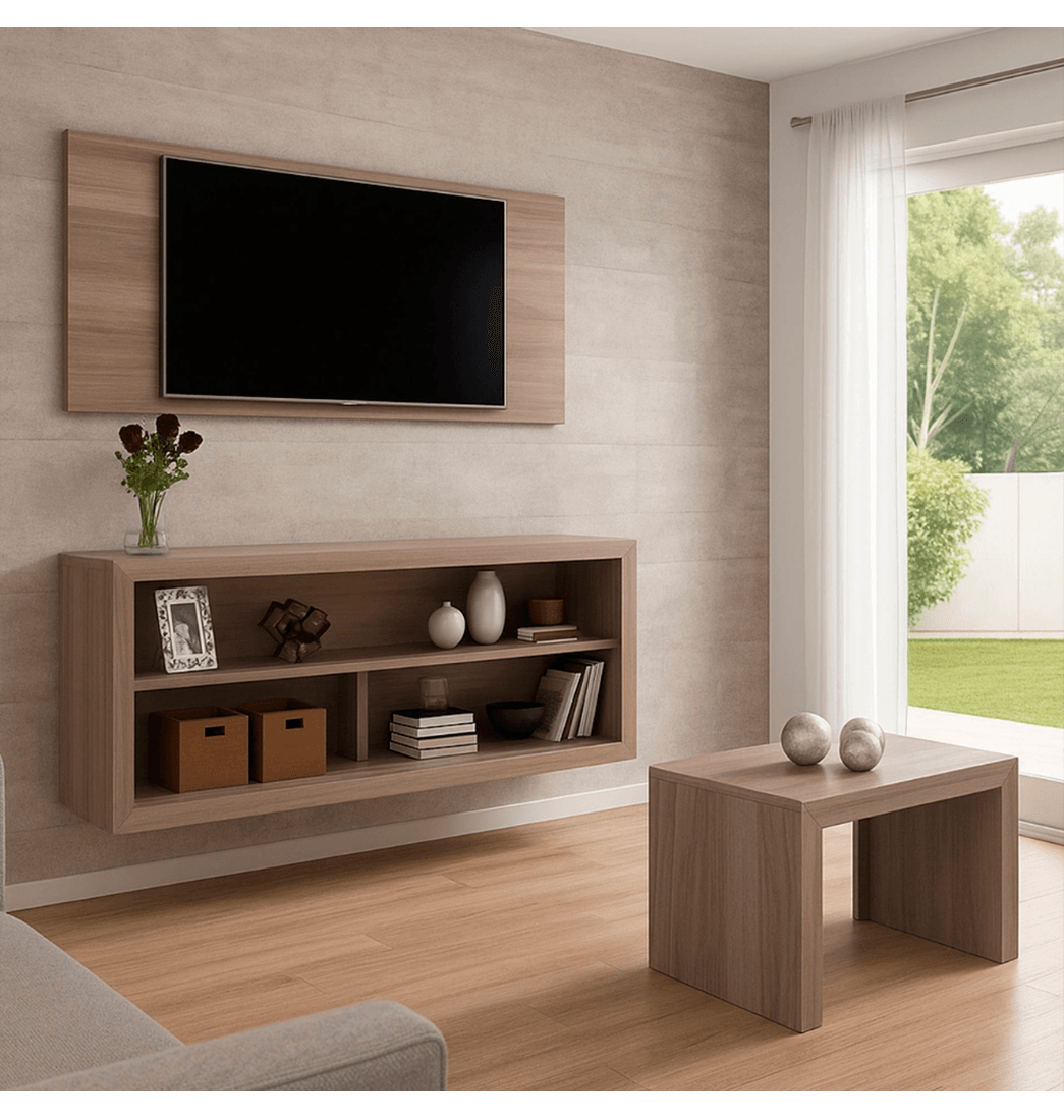 Transforma tu sala en el epicentro del estilo y la funcionalidad con este combo que redefine el confort contemporáneo. El panel para TV eleva la experiencia visual al máximo, brindando un toque elegante y ordenado a tu pared principal.