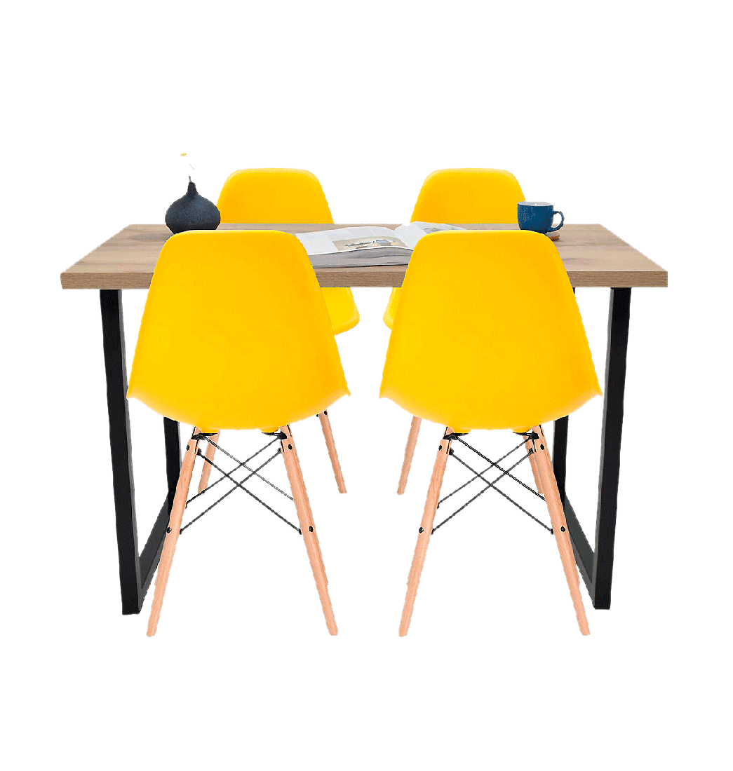 Comedor 4 Puestos Industry + Sillas Eames Amarillas - Ekonomodo Colombia